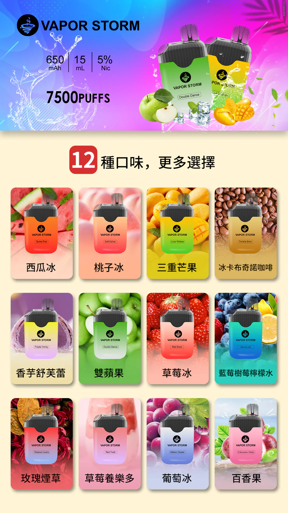 VAPOR STORM 7500 是一款集結了高容量、穩定性能和極簡操作的年度超值單品。